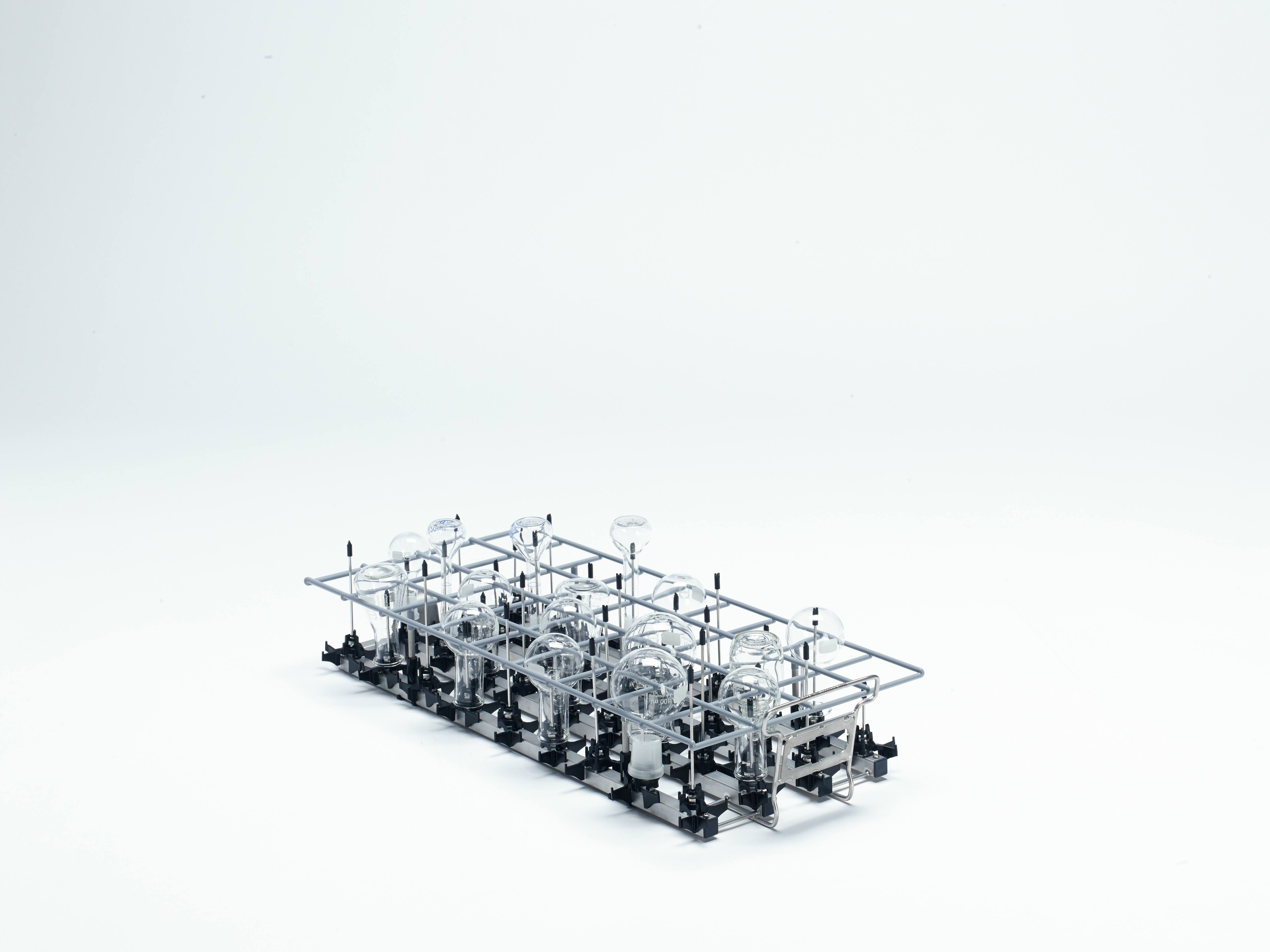 Τέλεια και διεξοδική επανεπεξεργασία γυάλινων ειδών εργαστηρίου, χάρη στα νέα πλυντήρια απολύμανσης για εργαστήρια SlimLine από τη Miele Professional, τώρα και με σύστημα EasyLoad: για γρήγορη φόρτωση και ιδιαίτερα αποδοτική αξιοποίηση του χώρου του θαλάμου πλύσης