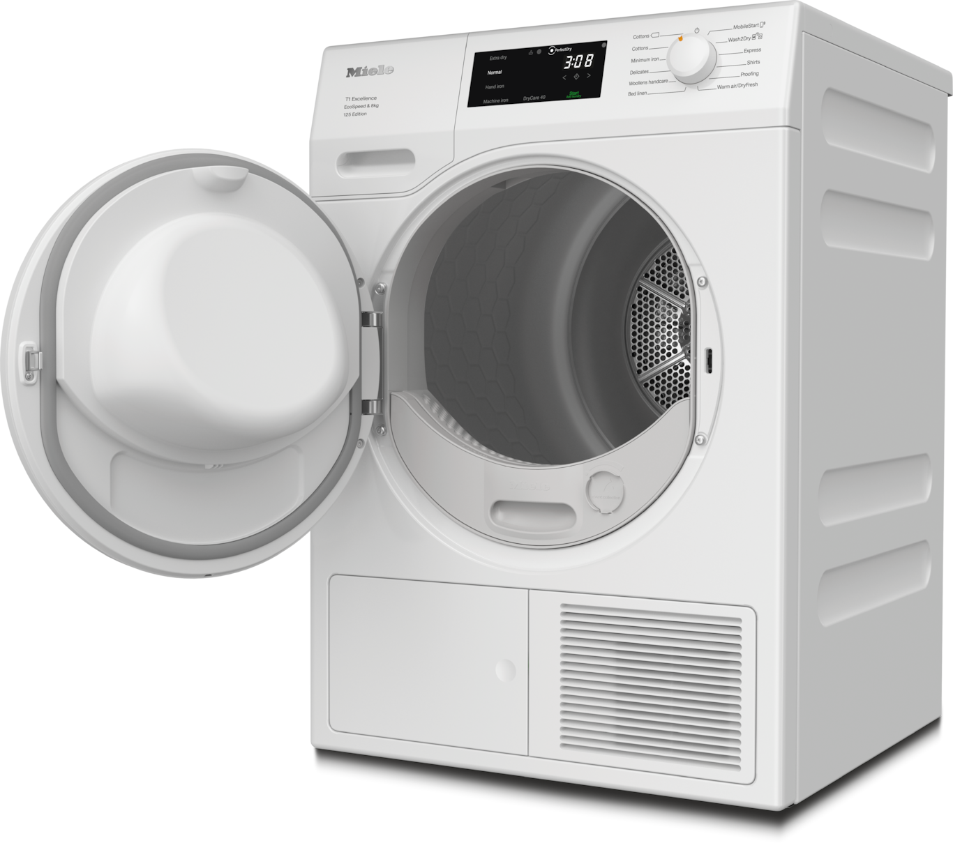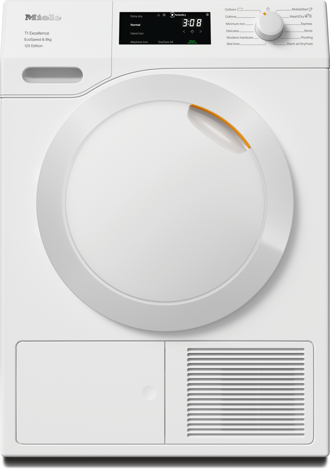 - 7.Η εξοικονόμηση χρόνου υπολογίστηκε σε σύγκριση με τα στεγνωτήρια Miele χωρίς EcoSpeed με το ίδιο φορτίο και παρόμοια κατηγορία ενεργειακής απόδοσης. Πραγματοποιήθηκαν δοκιμές στο πρόγραμμα «Βαμβακερά» με πλήρες φορτίο.